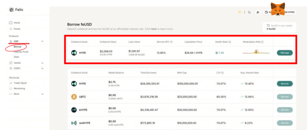 3. ➂ 「Felix」で feUSDをMint(発行) ※ガチ勢タスク🔥