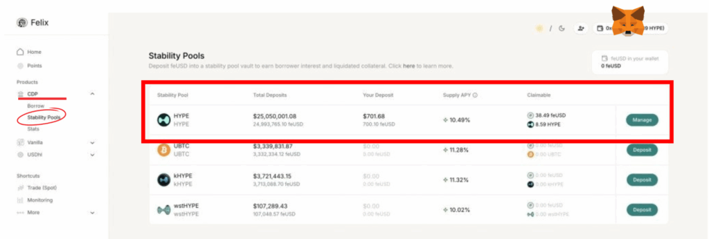✅ feUSDやUSDeなどのステーブル運用も可能