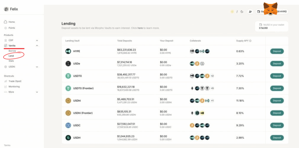 ④ Felix HYPE Vault(HYPEの貸付状況)