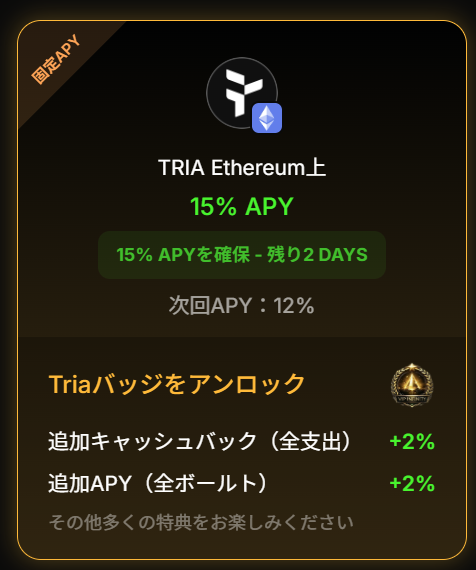「Triaトークンのステーキング機能」が正式にスタートしています。