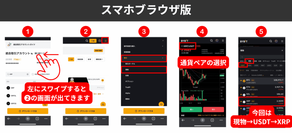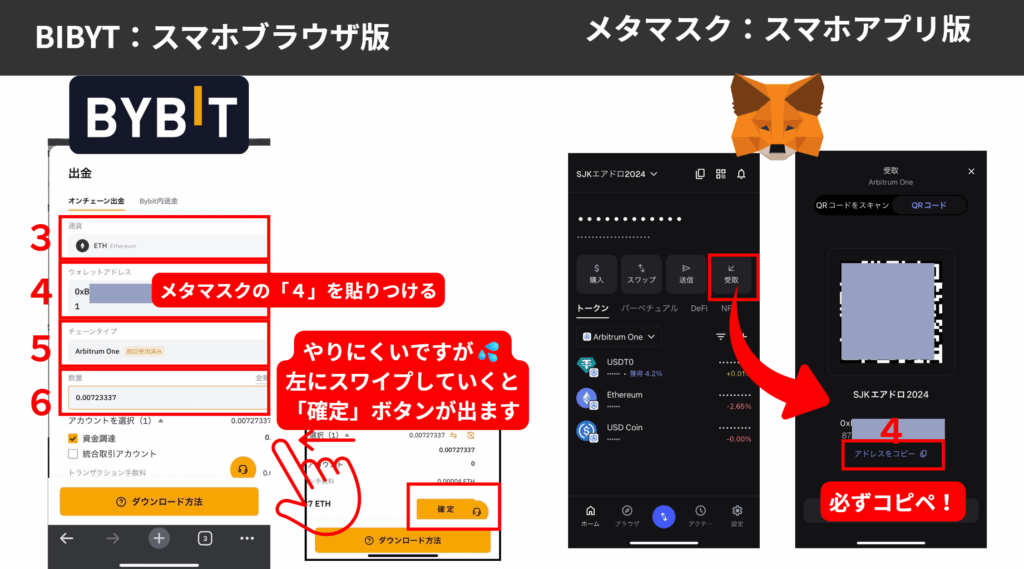 └ XRP → USDT、USDT → ETH - BYBIT → MetaMask(ウォレット)へ送金できる