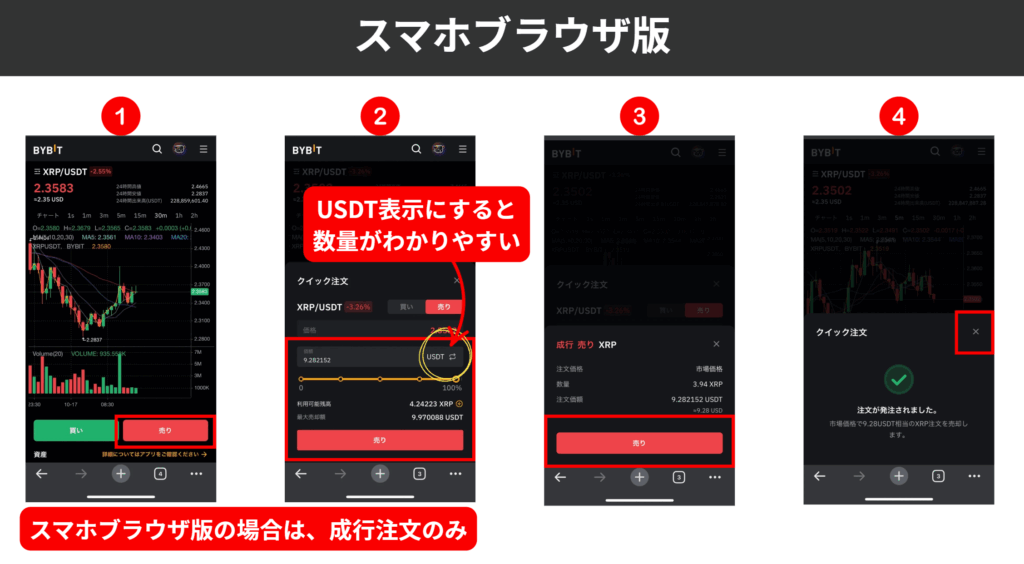 今回は、通貨ペア:BTCUSD・成行注文で説明をしていきます。