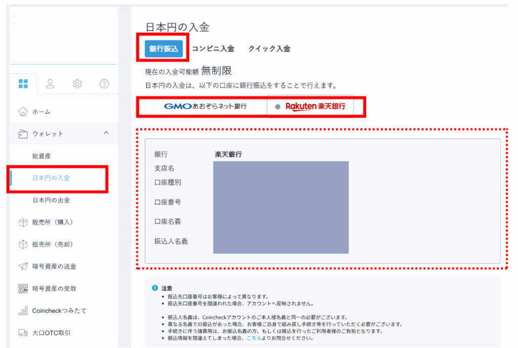 ⇒ GMOあおぞら銀行・楽天銀行から選択し、日本円を振り込む