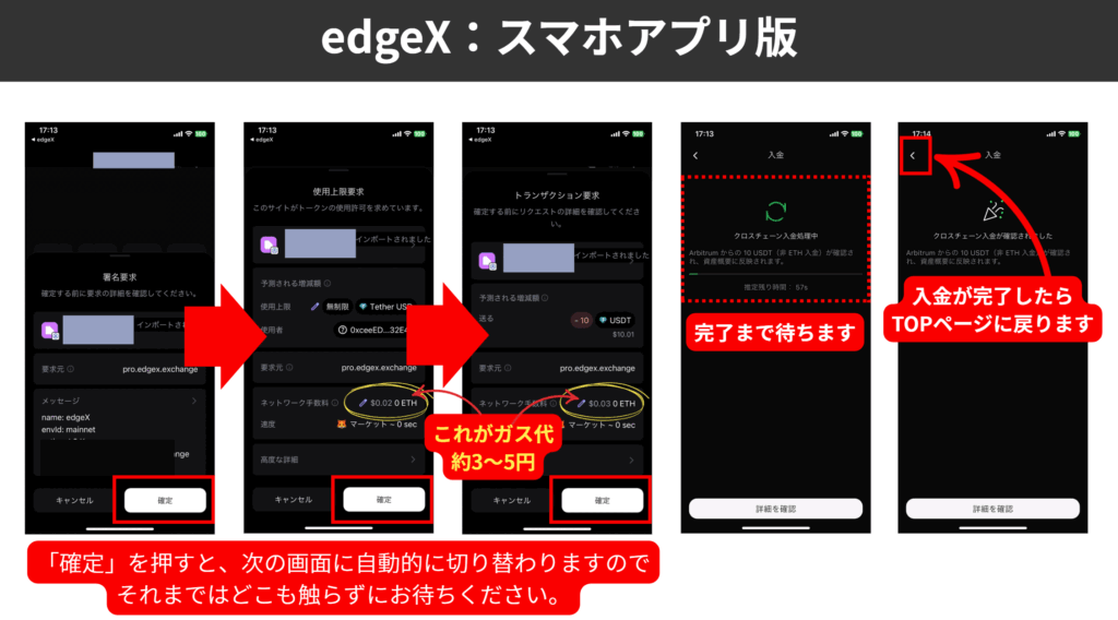 なぜなら、この後edgeXにUSDTをデポジットする時に、ガス代としてETHが必要になるからです。