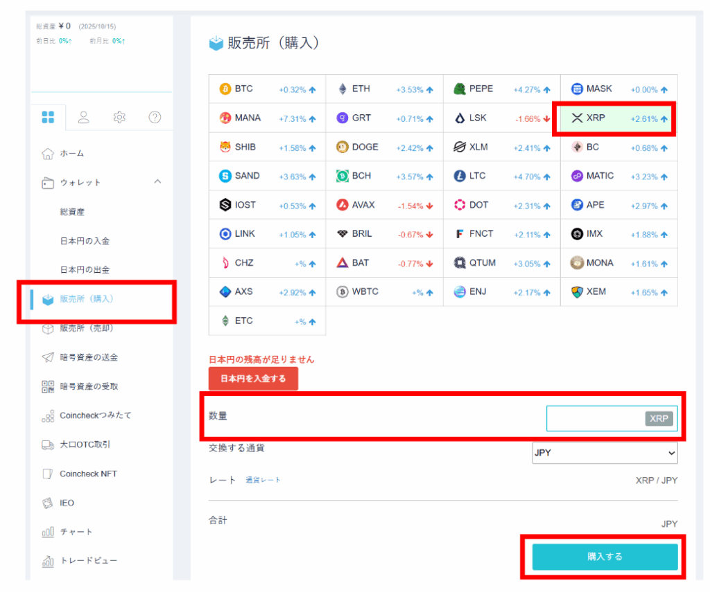 ●STEP 2:コインチェックでXRP(リップル)を買う